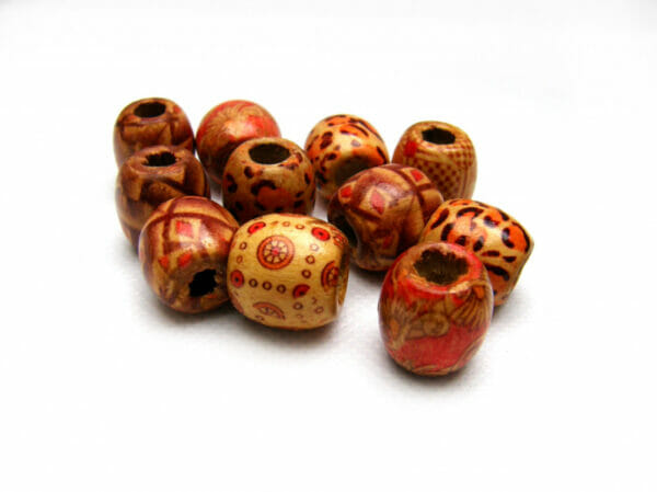 Korálek dřevěný s potiskem, tvar soudek, rozměr 16x16mm, barva mix