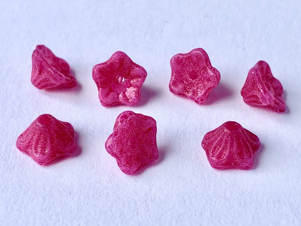 Mačkané korálky zvonečky 5×7 mm, barva tmavě růžová, 32037